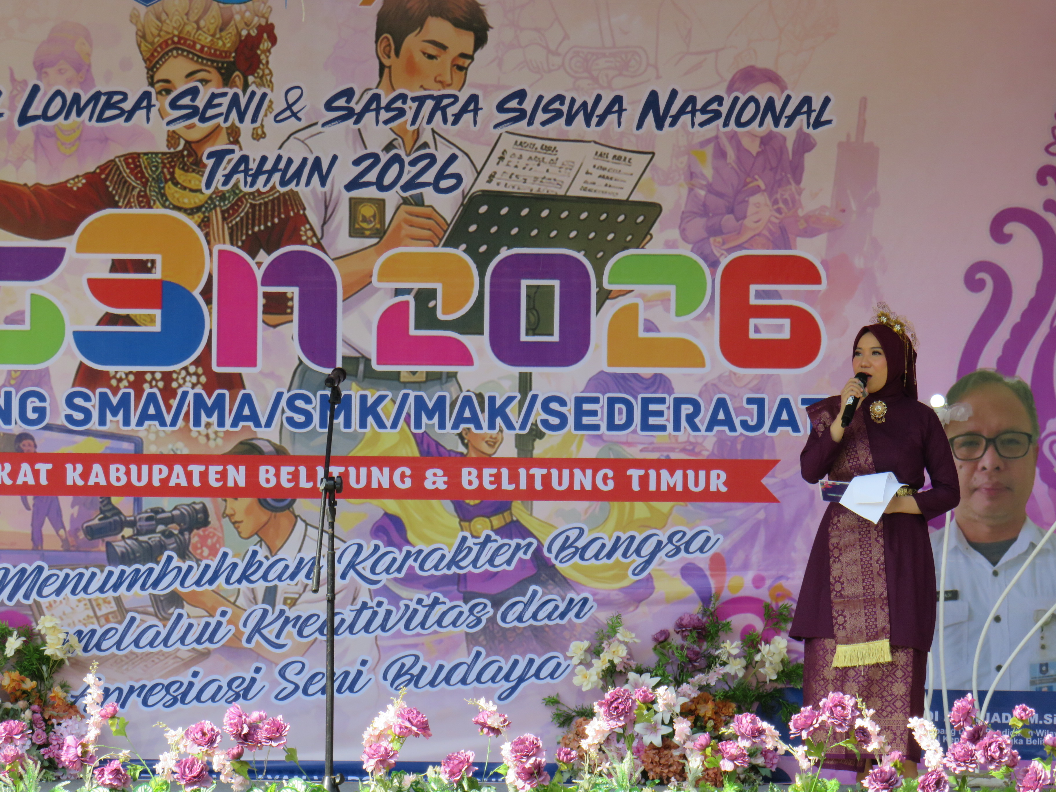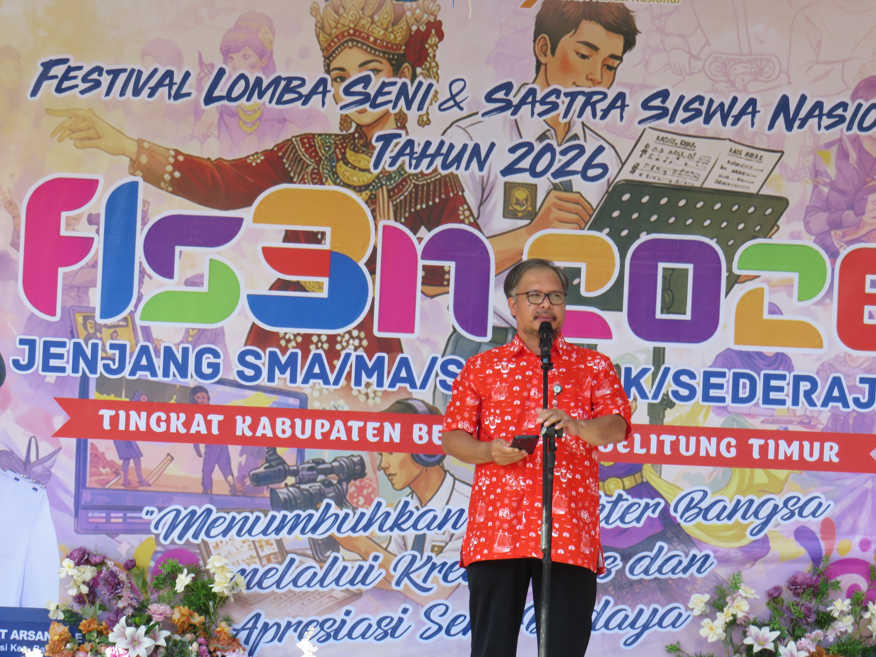 TANJUNGPANDAN - Pembukaan Festival Lomba Seni dan Sastra Siswa Nasional (FLS3N) Jenjang SMA/SMK/MA/Sederajat Tingkat Cabang Dinas Pendidikan Wilayah V Belitung dan Belitung Timur Tahun 2026 dilaksanakan di SMK Negeri 1 Tanjungpandan pada Selasa (28/4/2026).