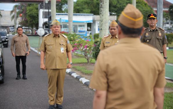 PANGKALPINANG – Gubernur Kepulauan Bangka Belitung (Babel) Hidayat Arsani, memimpin apel bersama jajaran pegawai di lingkungan Pemerintah Provinsi Babel di Halaman Kantor Gubernur Babel, Pangkalpinang, Senin (20/4/2026).