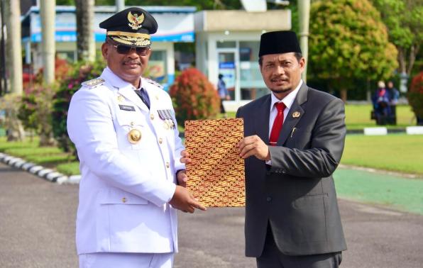 PANGKALPINANG - Penjabat (Pj) Gubernur Kepulauan Bangka Belitung, Safrizal Zakaria Ali melantik Pj. Sekretaris Daerah (Sekda) Provinsi Kepulauan Bangka Belitung, Fery Afriyanto di lapangan upacara kantor Gubernur Kepulauan Bangka Belitung, Air Itam, Pangkalpinang, Senin (29/4/2024).